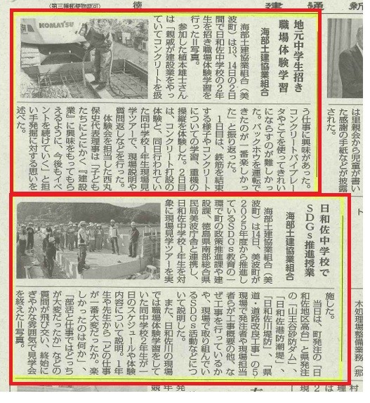 U君、2日間お疲れさまでした。数ある企業の中から、海部土建協業組合を選んでくれてありがとう😭U君が打設したコンクリートは、何十年先もここに残っています。大人になった時に、今日の職場体験のことを思い出してくれたら嬉しいです。