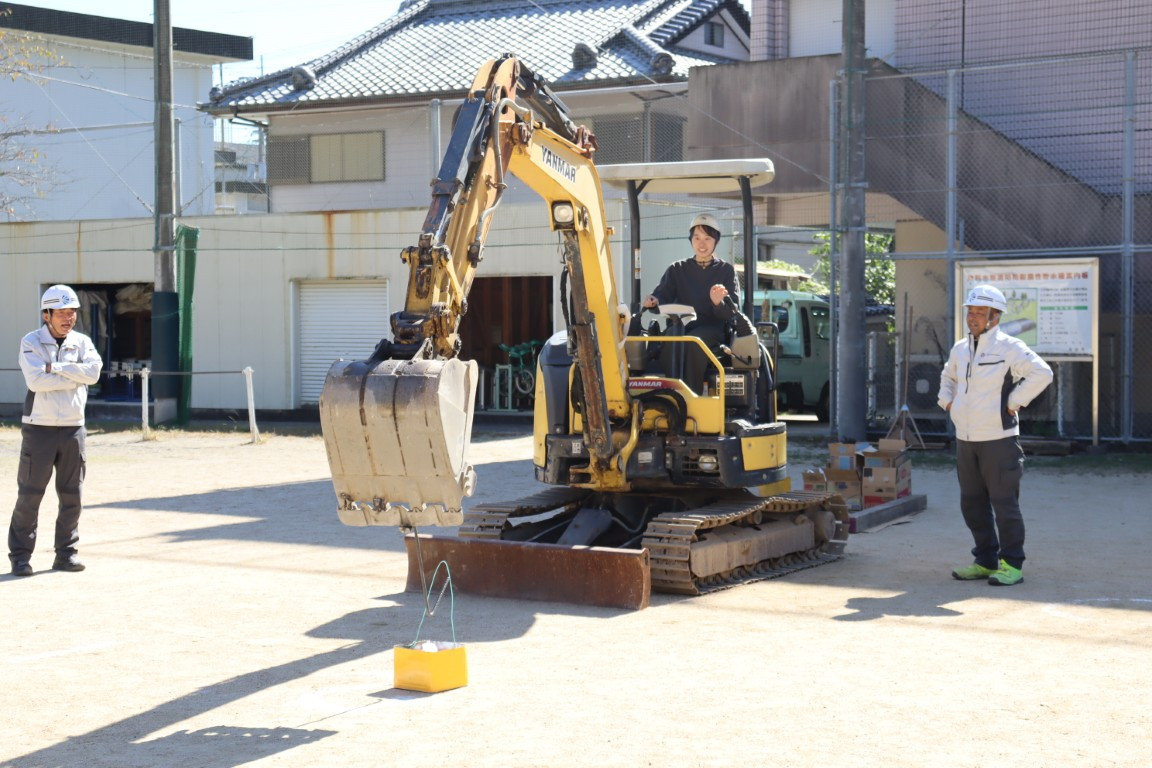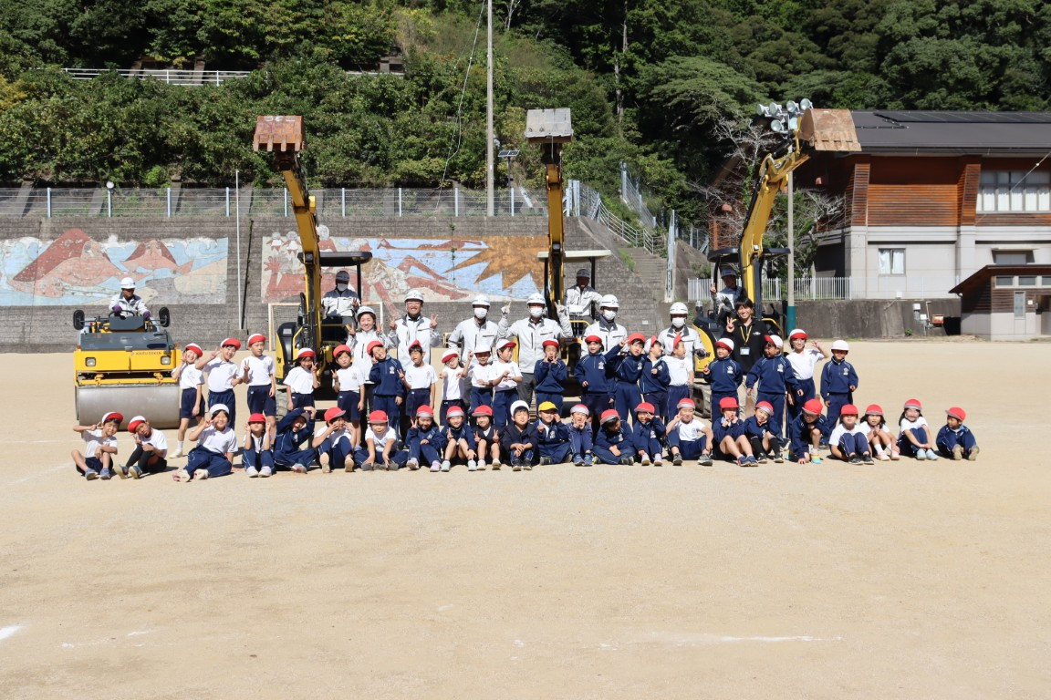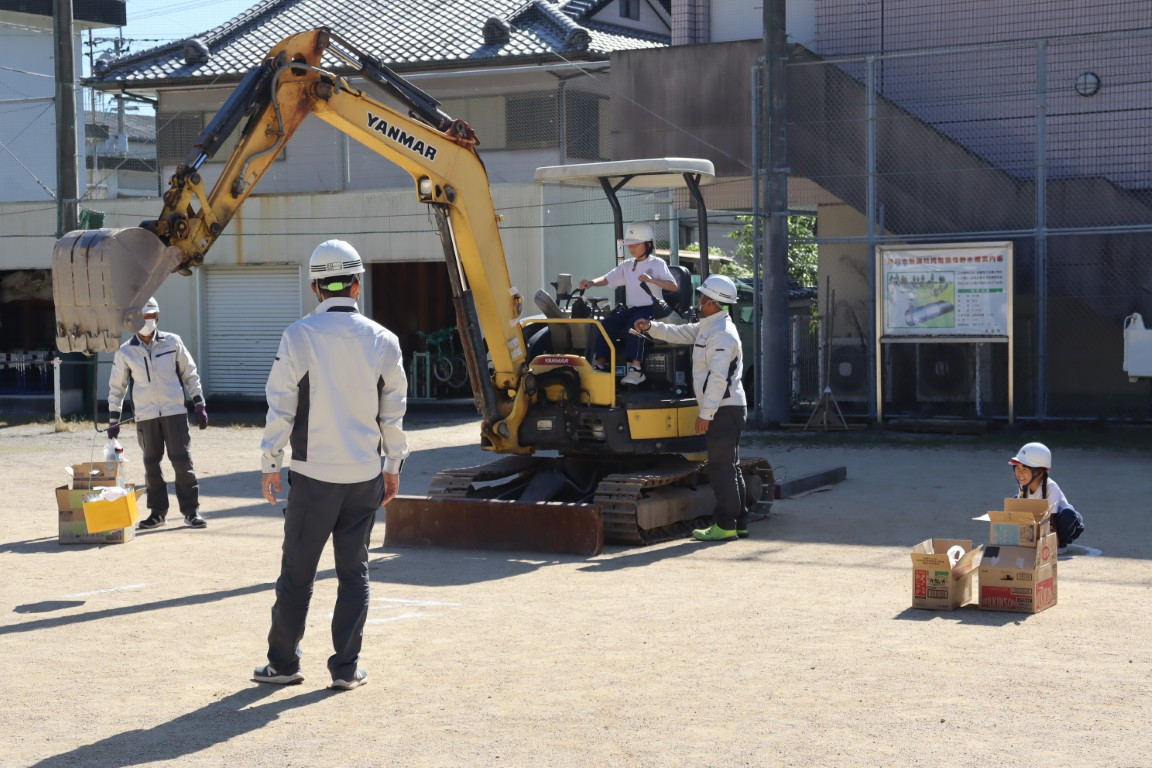 授業内容が『持続可能なまちづくりに、建設業がどのように関わっているか。(町を守る働く車)』でしたので、建設重機について授業を行ってまいりました。